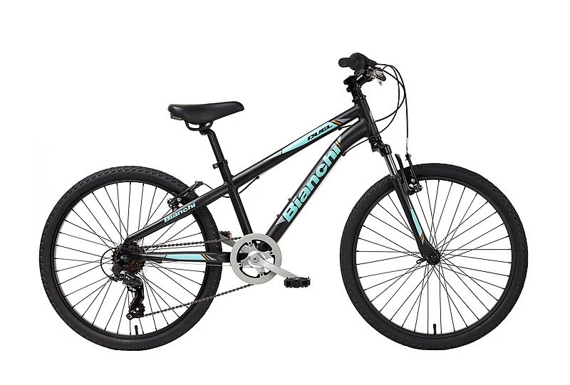 When your mini-me is ready to hit the trail with you, give them a bike that can keep up. The Duel 24″ has a lightweight alloy frame and fast rolling 24″ alloy wheels with knobby tires for plenty of speed and stability. The Shimano Tourney Revo-Twist 6-speed drivetrain is easy to use and gives them enough options to get used to gearing without being overwhelming. A suspension fork smooths out the bumps in the trail and dependable v-brakes keep speed under control.