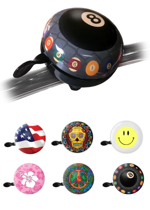 Ding Dong! These big colorful bells sound like a door bell with their two tone ring. The dome is over 3” wide for a deep attention getting ring.