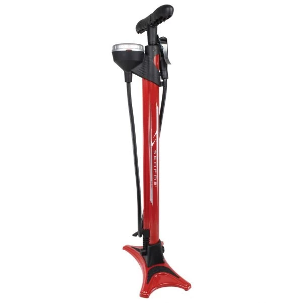 This pump has it all – nice stable alloy base, easy to read gauge that is 2.5? in diameter, Simple Valve pump head that accepts Presta & Schrader, 160 PSI capabilities & an ergonomic handle. We even put some grip tape on the base so when you go to air up your tires after putting on your Serfas cycling shoes, you won’t have to worry about slippage.