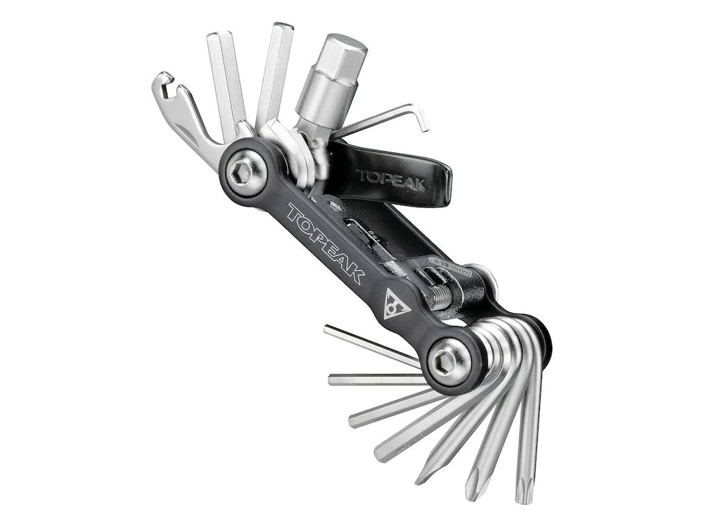 The lightest 20 function mini tool. It packs in a compact, durable package with its own neoprene case. Includes a mini 4 mm Allen key for self-maintenance.