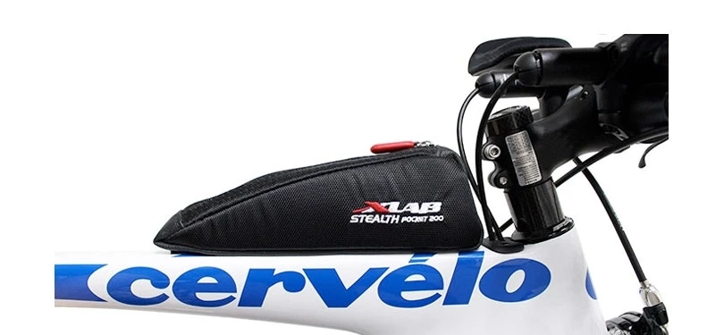 Flat fronted aerodynamic bag sits up against stems. 2.5″ high, 20.4 cubic inches of storage.